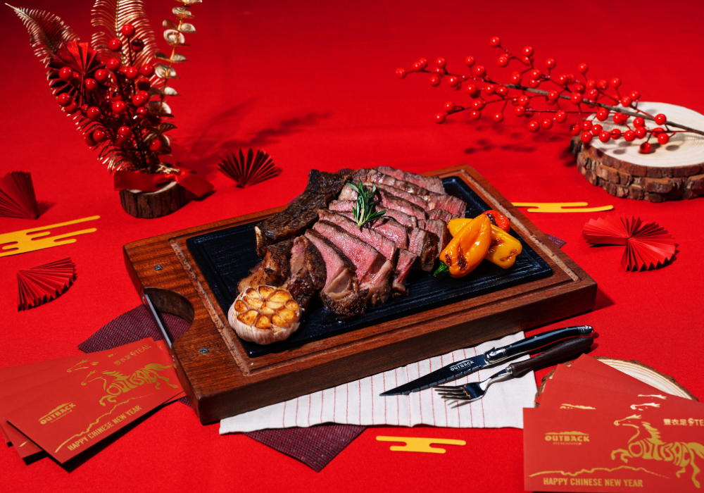 Outback Steakhouse Hong Kong celebrates Valentine’s Day and Lunar New Year with festive dining offers. The Valentine’s set menu “The Chosen Selection” features starters, premium mains like AUS. Wagyu sirloin or lamb rack paired with lobster, plus optional desserts and themed drinks, available 13–14 February. From 15–28 February, Lunar New Year specials include Prosperous Tuna Yu Sheng Salad, 1kg Fortune Ribeye, seafood pasta, and platters, with 10% off takeaway. Exclusive catering offers provide discounts, free delivery, and cash coupons. Guests can also enjoy a promotional takeaway box of six signature brown sugar wheat breads, individually wrapped with butter.