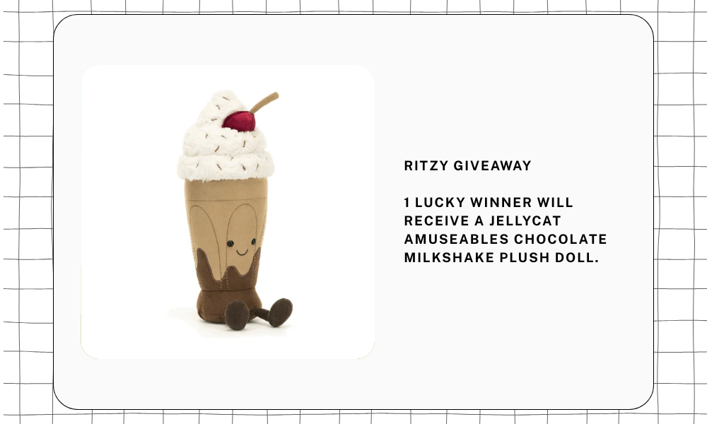 Ritzy Giveaway – 1 lucky winner will receive a Jellycat Amuseables Chocolate Milkshake plush doll.