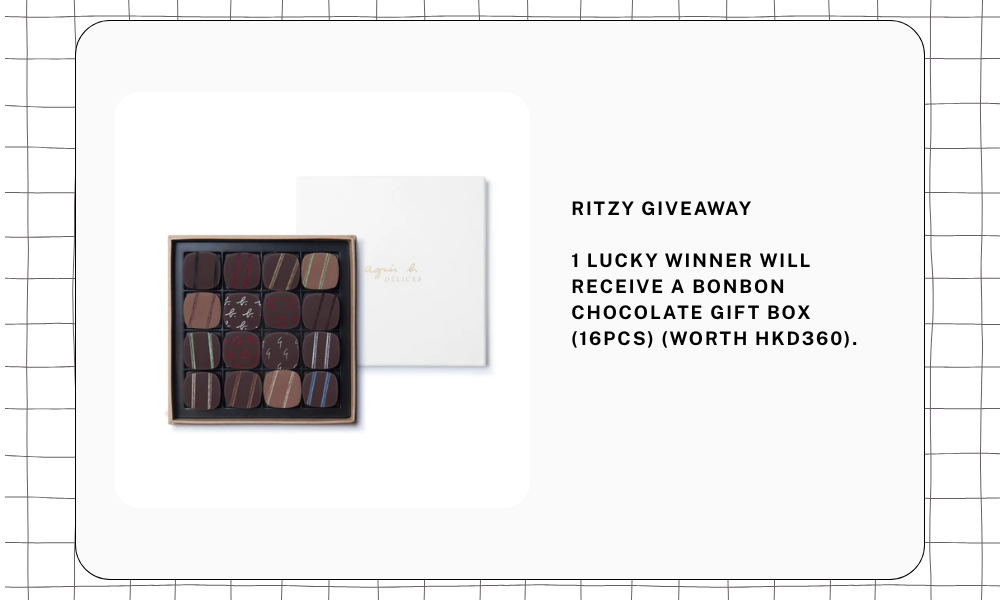 Ritzy Giveaway – 1 lucky winner will receive an agnès b. CAFÉ Bonbon Chocolate Gift Box (16pcs) (worth HKD360).